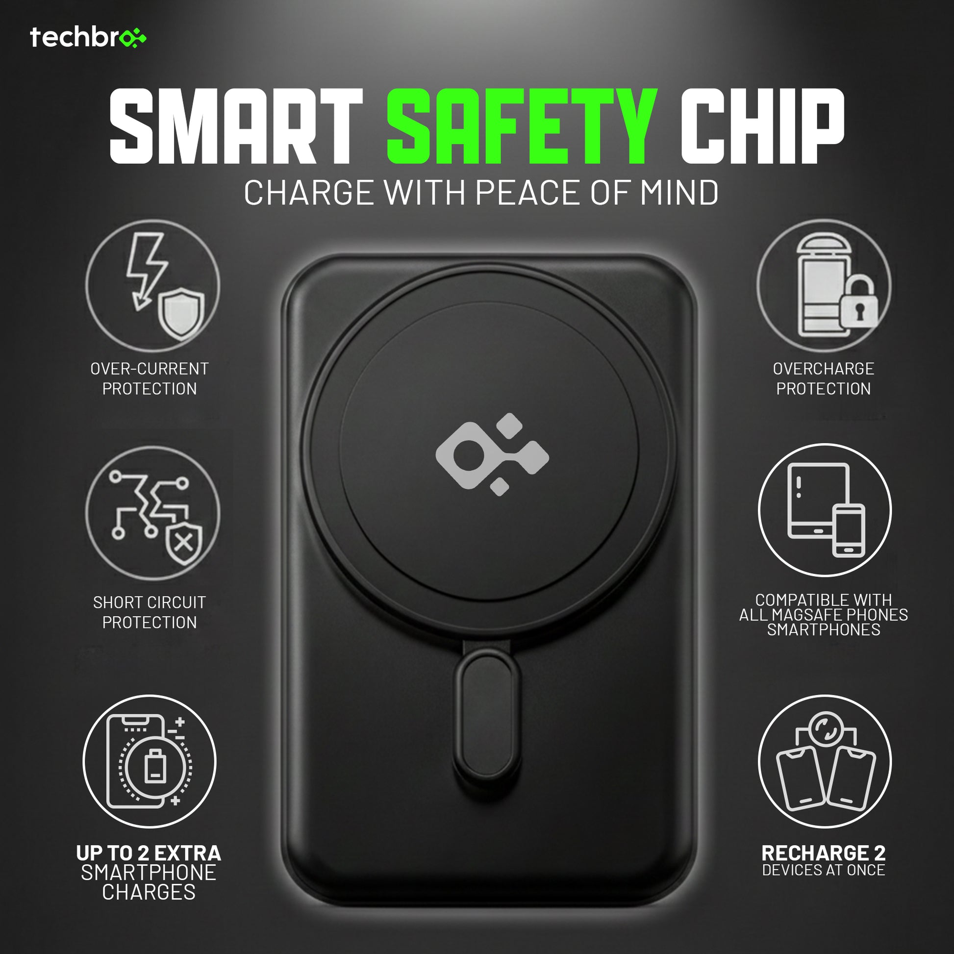 Power more than one device at once. Charge your smartphone wirelessly while using the USB-C output to charge earbuds, smartwatches, or another phone simultaneously. Intelligent power management distributes energy efficiently, ensuring safe and stable charging without overheating or performance drop—keeping all your essentials ready when you need them.